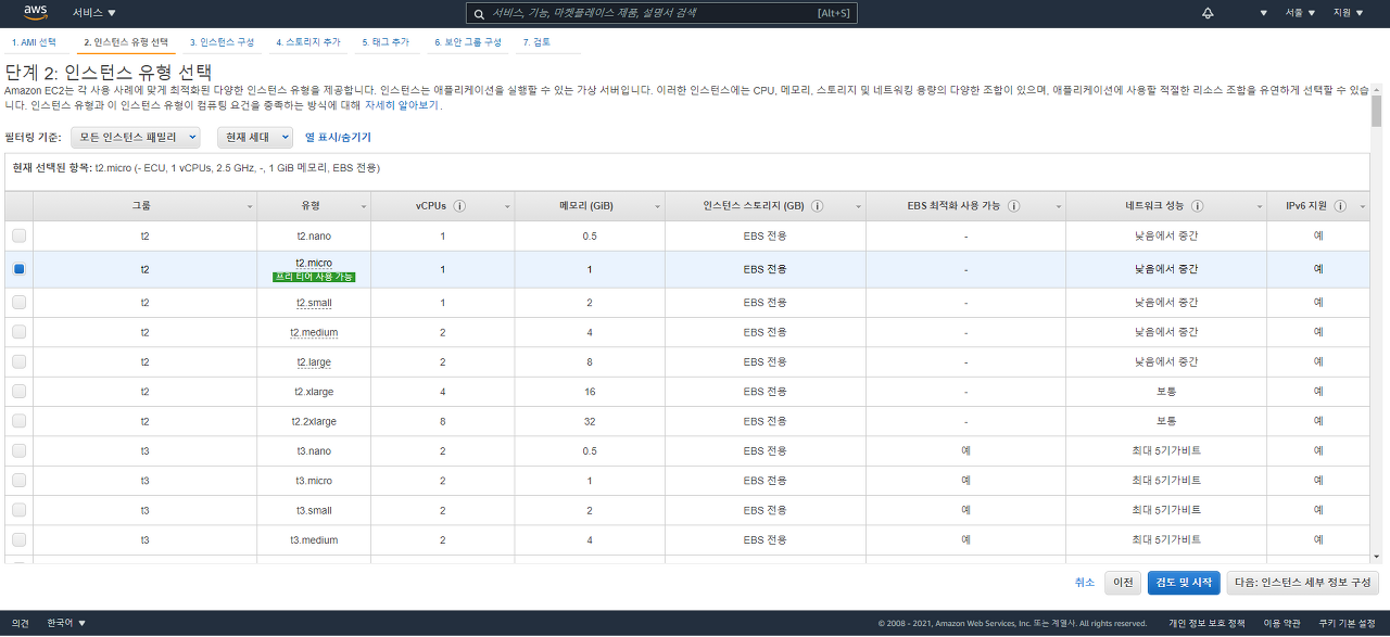 2. Amazon Machine Image(AMI) 선택 (운영체제)