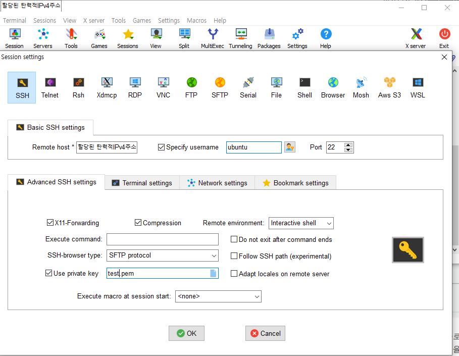 12-3. Remote host에 할당된 탄력적 IPv4주소를 입력해준다.