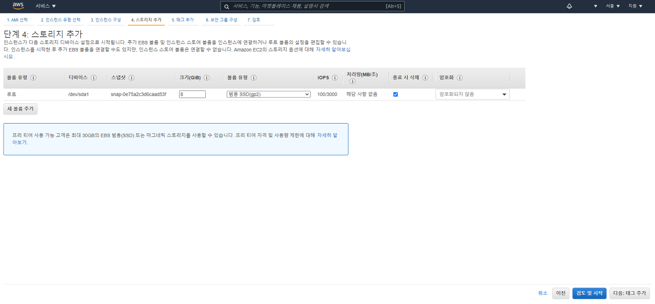 4. 검토 및 시작 또는 다음