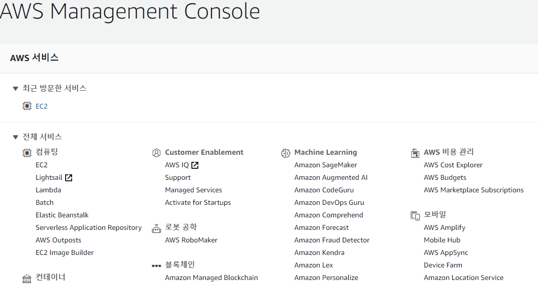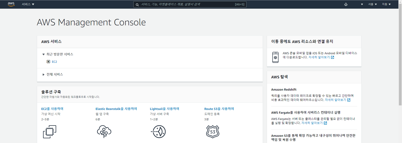 메인 > 솔루션 구축 > EC2를 사용하여 가상머신 시작