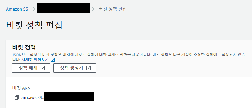 버킷 선택 > 권한 > 버킷정책 > 편집