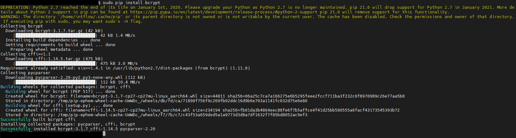DEPRECATION: Python 2.7 reached the end of its life on January 1st, 2020. Please upgrade your Python as Python 2.7 is no longer maintained. pip 21.0 will drop support for Python 2.7 in January 2021. More details about Python 2 support in pip can be found at https://pip.pypa.io/en/latest/development/release-process/#python-2-support pip 21.0 will remove support for this functionality.