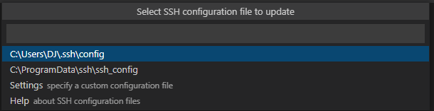 (win) vscode > Ctrl + Shift + P, F1 > rremote-ssh: open ssh configuration file... 검색 및 선택
