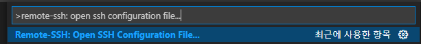 1. 메뉴 > 보기 > 명령 팔레트(Show Command Palette) > remote-ssh: open ssh configuration file... 검색 및 선택