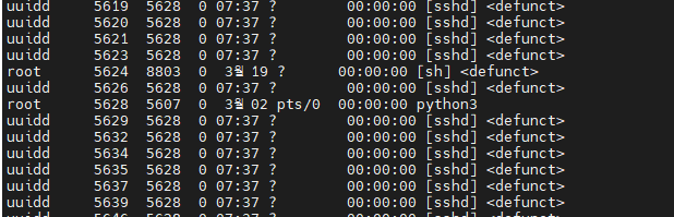 그리고 공통점이 부모의 PID인 PPID가 다 동일한 5628이였고 모르는 sshd 였다...