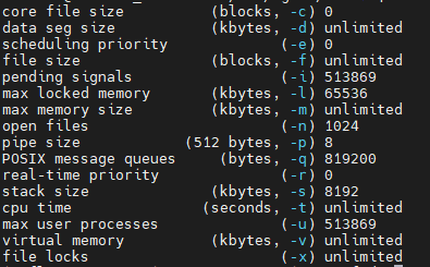 open files와 max user processes가 문제라고 한다 보통 기본값 1024