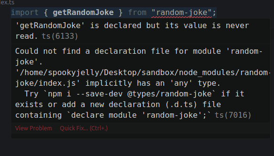 저장하고 index.ts로 가봅시다. 빨간줄이 사라진것을 확인할 수 있습니다.